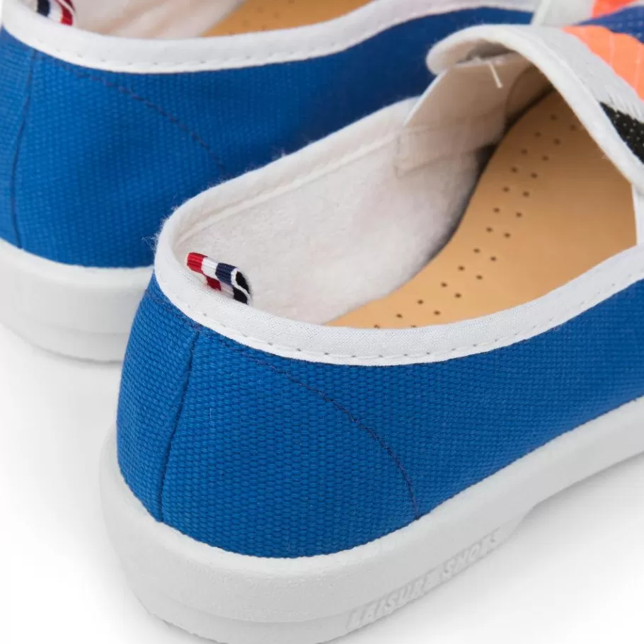 . Cotton canvas . Blue-White-Red pull-on tab . Cotton piped . Terrycloth lined . Sheepskin inner sole . Gum outsole . Ma…