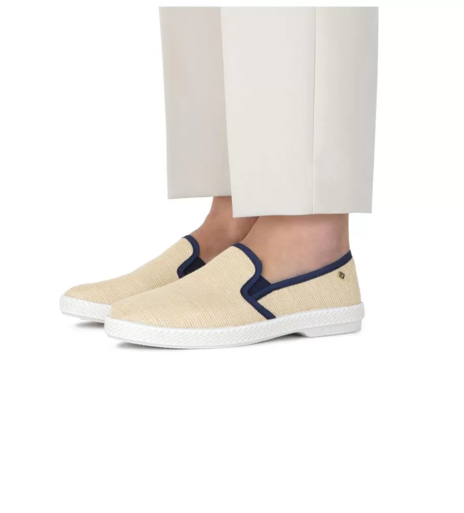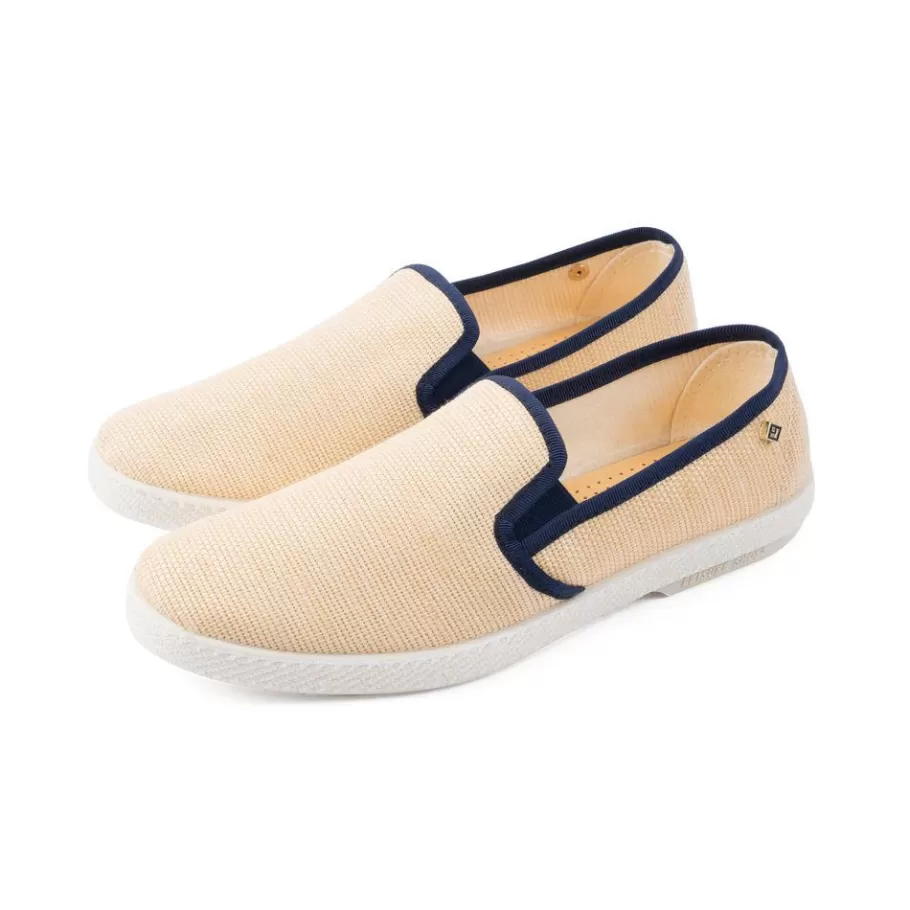 . Raffia. Golden rivet emblem . Grosgrain polyester piped . Cotton lined . Sheepskin inner sole . Gum outsole . Made in …
