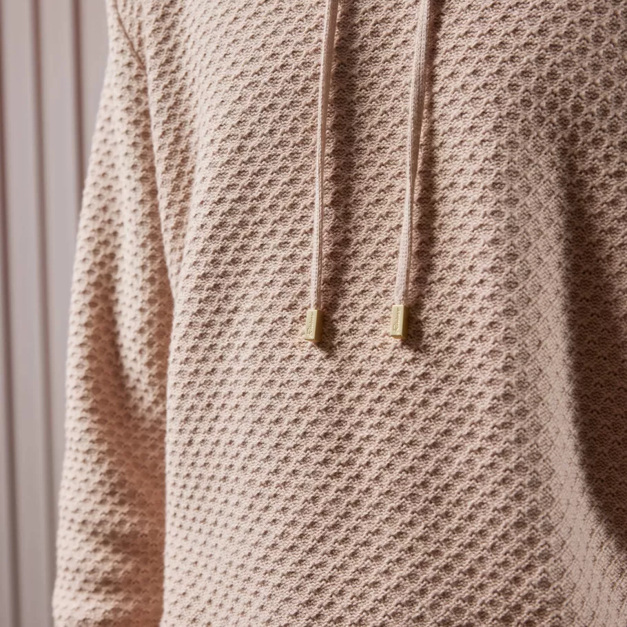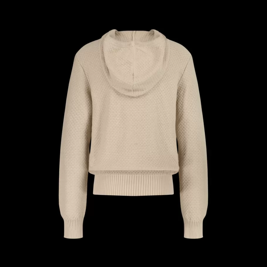 Hooded sweaterFancy diamond-stitch knitColor: CamelComposition: 90% cotton10% cashmereMade in MoroccoReference : PLFLORE…