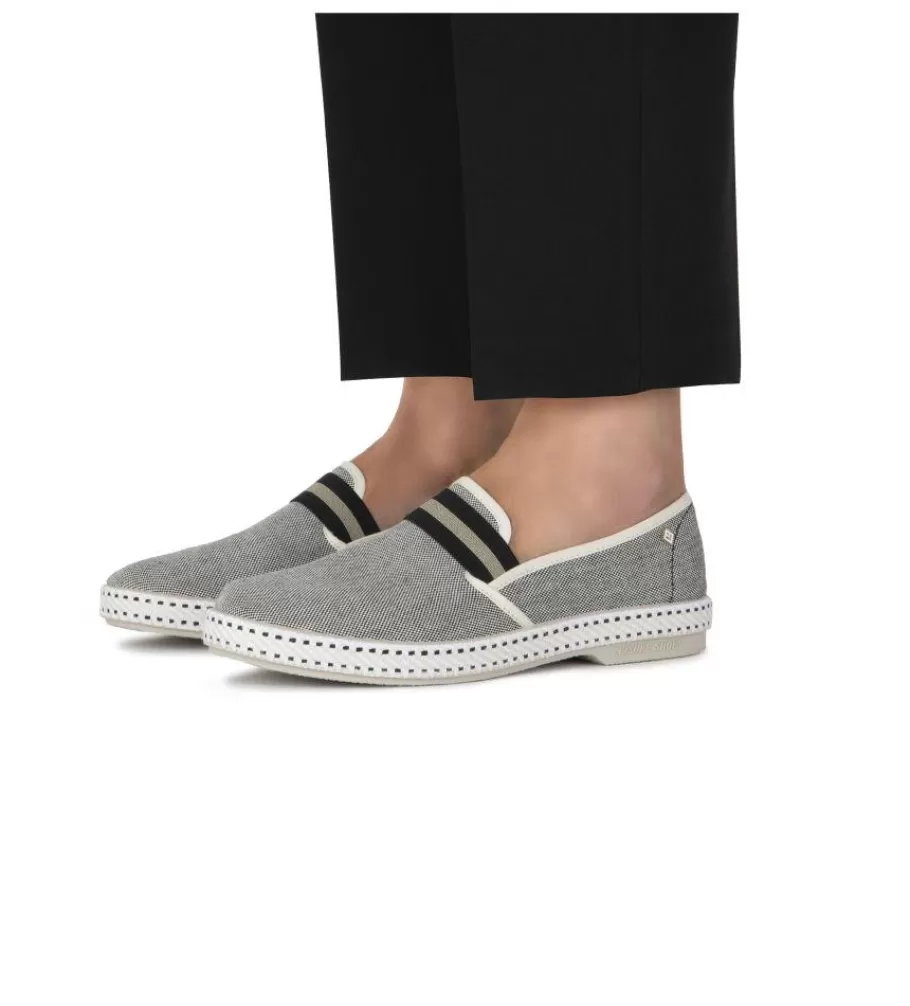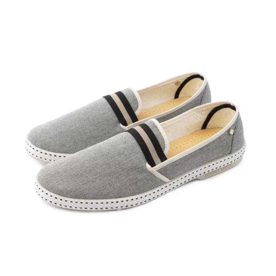 Canvas oxford loafer with striped elastic on tongue