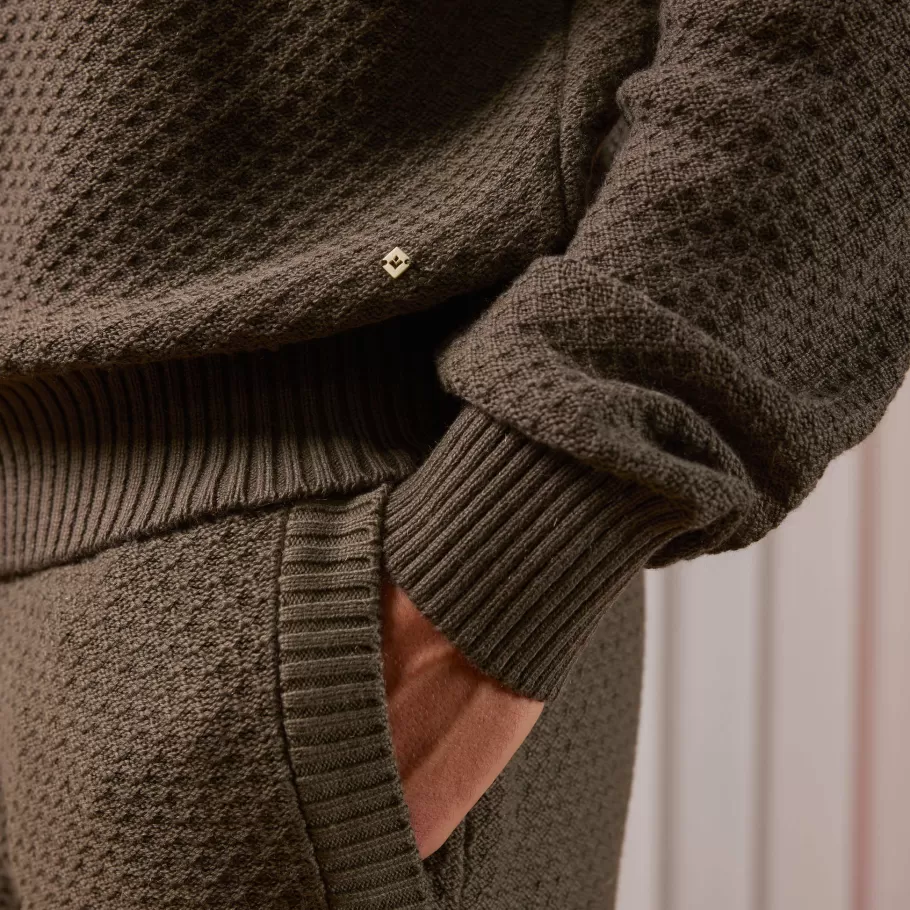 Jogging pants with drawstringTightened at the ankle. Fancy « Losange » stitchColor: KhakiComposition : 90% cotton10% cashm…
