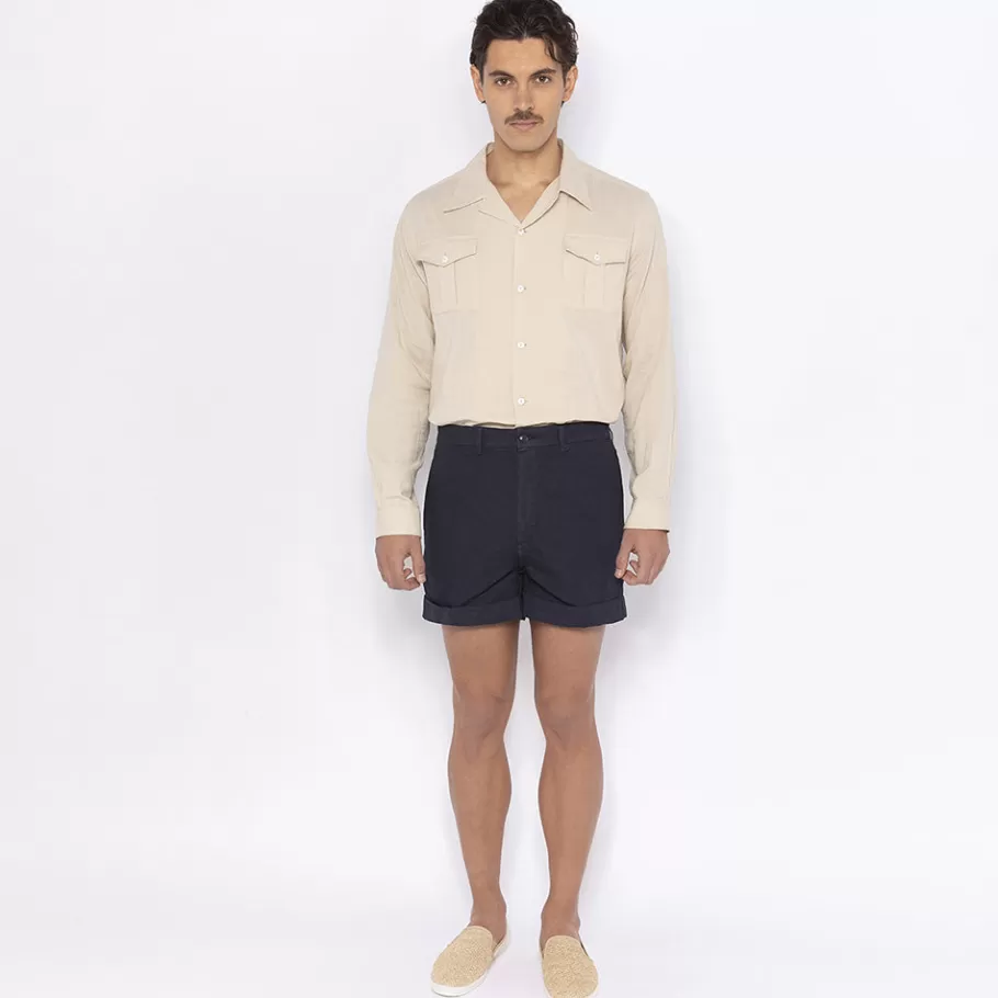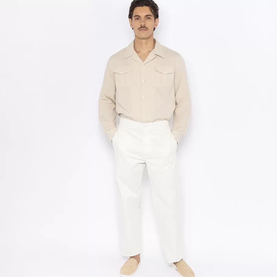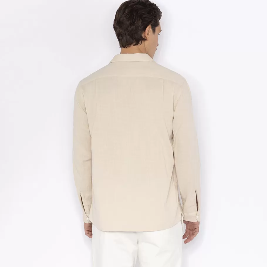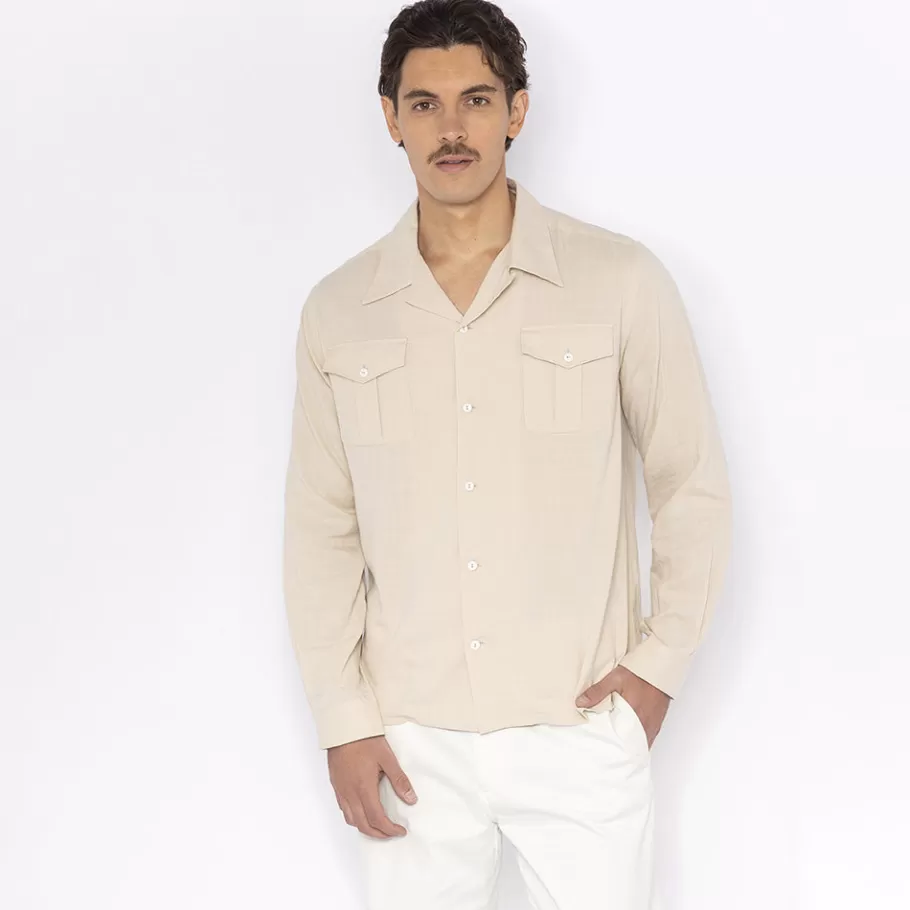 Long-sleeved shirt with gusseted pockets and Hawaiian collar