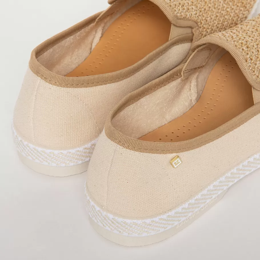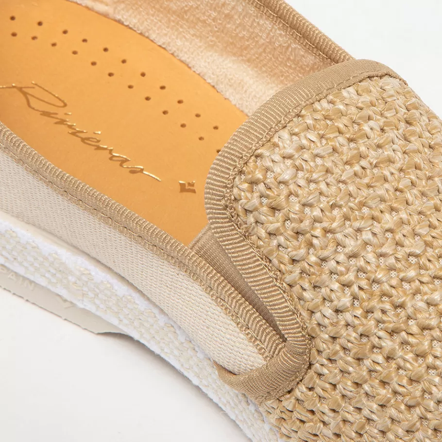 Mocassin en toile de coton et tissu texturé effet raphia naturel