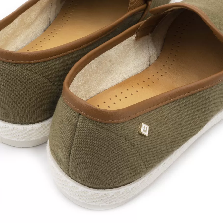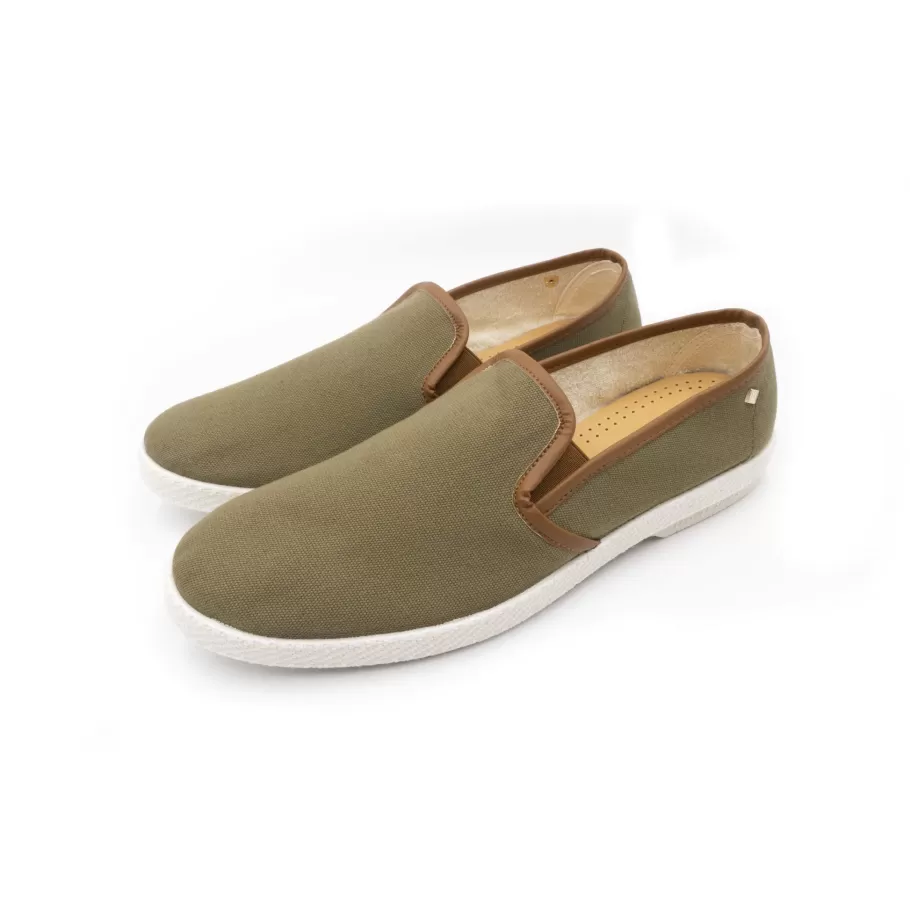 | . Oxford & cotton . Golden rivet emblem . Leather piped . Terrycloth lined . Sheepskin inner sole . Gum outsole . Made in Spain |
