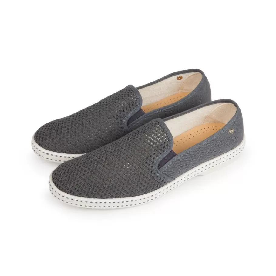 Mocassin en toile de coton et résille seaqual*. Toile de coton et résille seaqual*. Rivet en métal doré. Biais en co…
