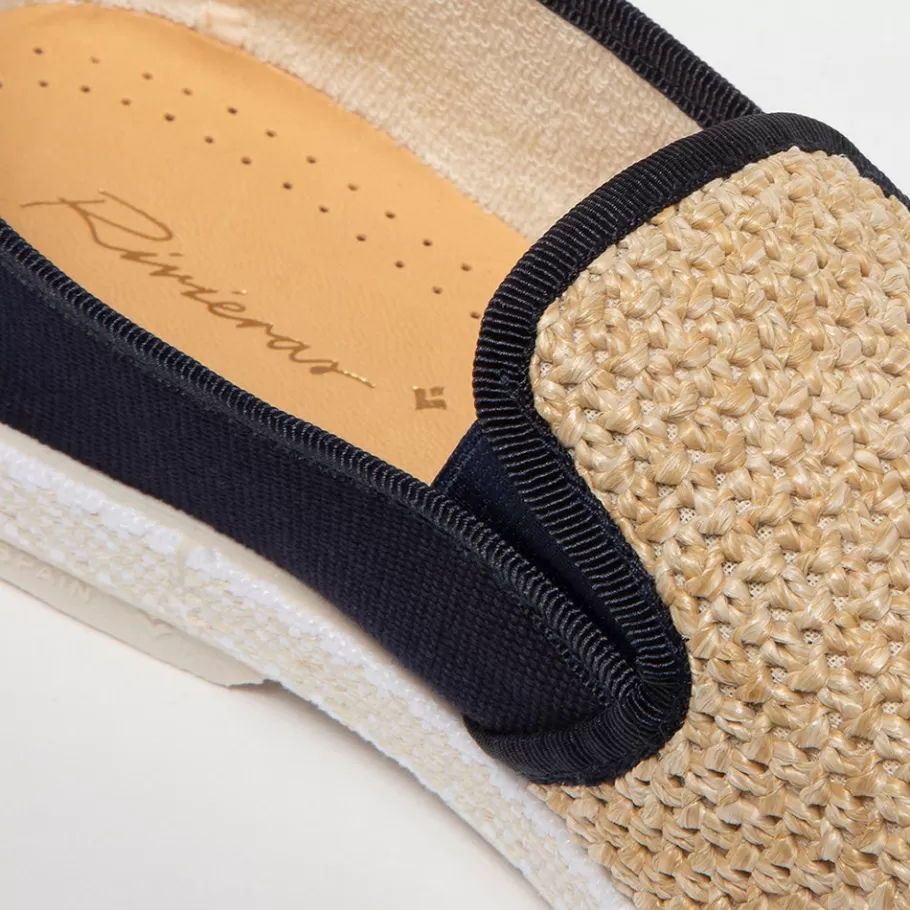 Mocassin en toile de coton et tissu texturé effet raphia naturel