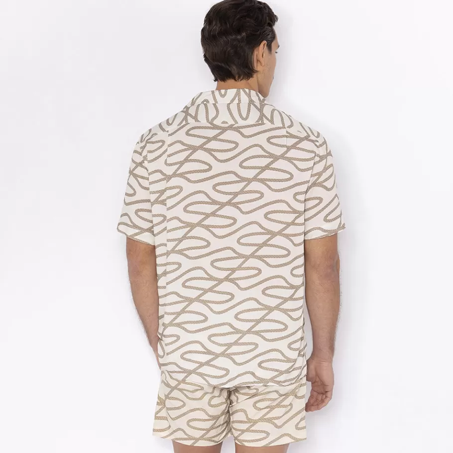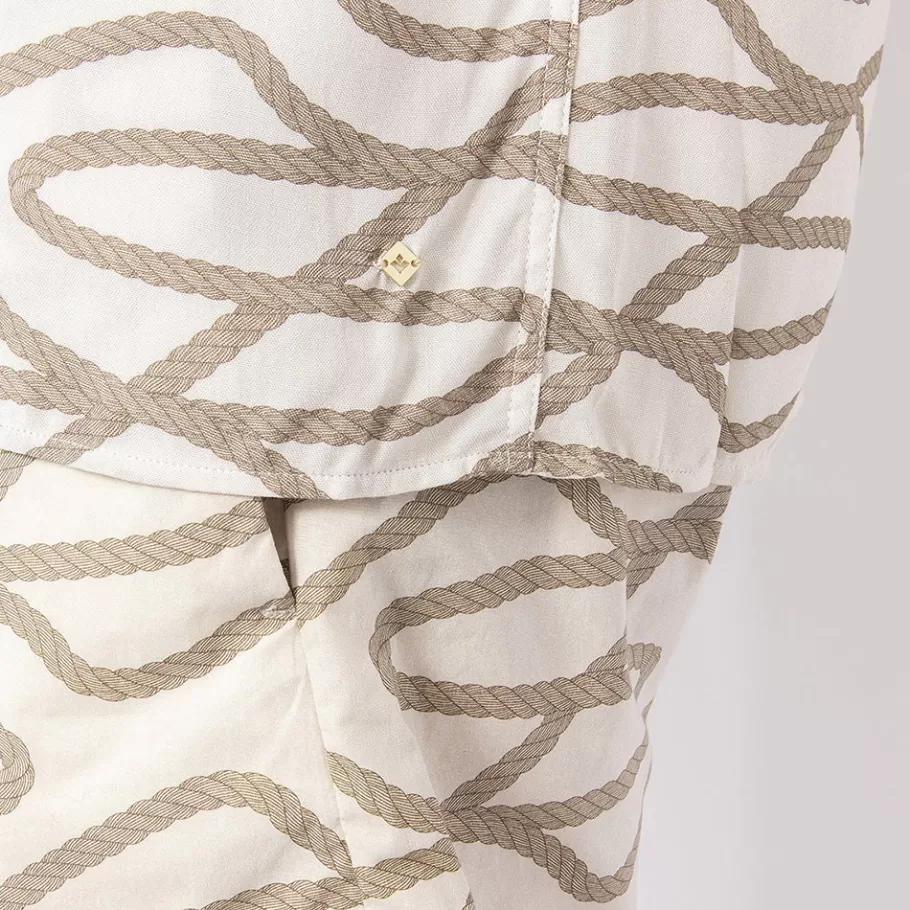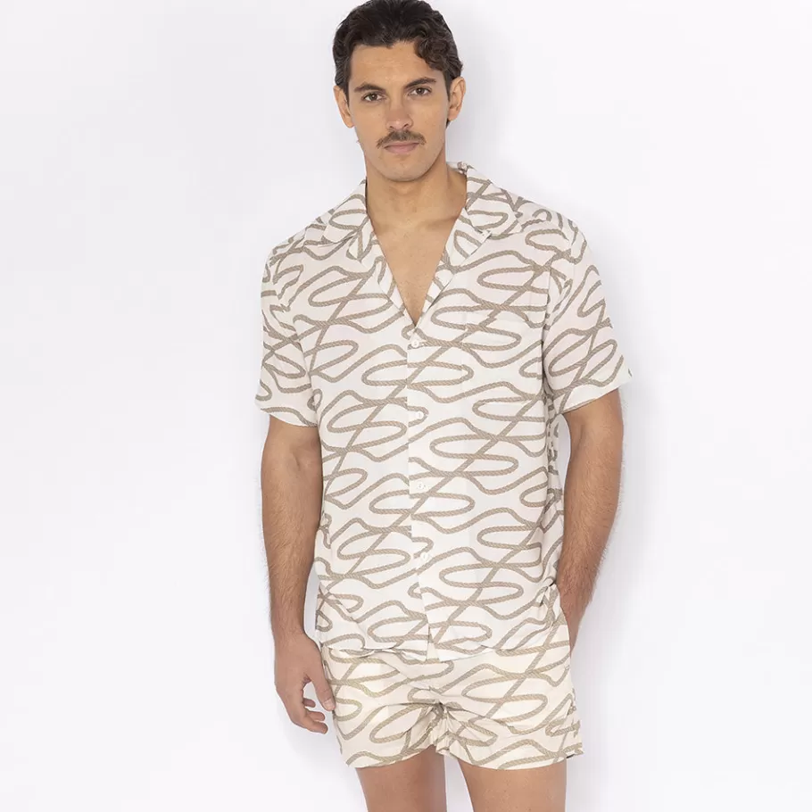 Lightweight, flowing shirt. Hawaiian collar and rope print