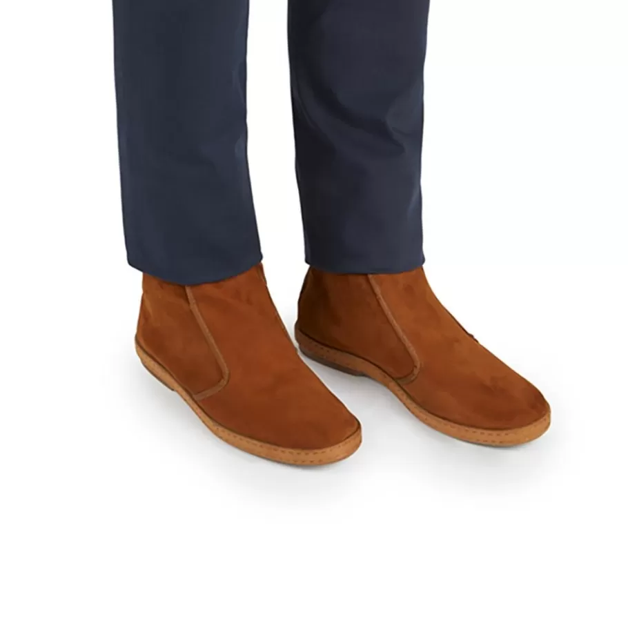 . Suede. Golden rivet emblem. Zipper on the back. Cotton piped. Sheepskin inner sole . Saddle-stitched welt. Gum outsol…