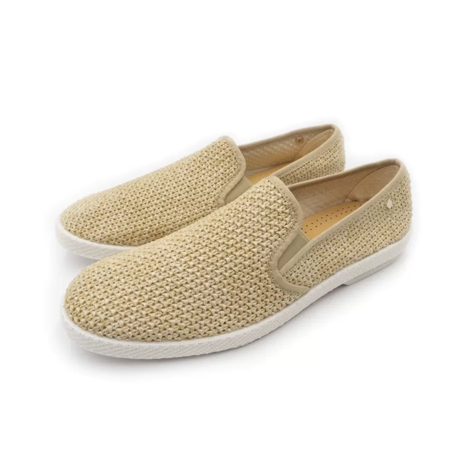 Mocassin en tissu texturé effet raphia naturel