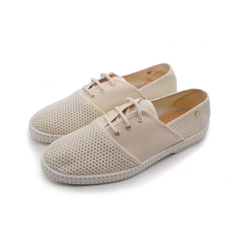 Lace-up shoe in cotton canvas and seaqual* fishnet.