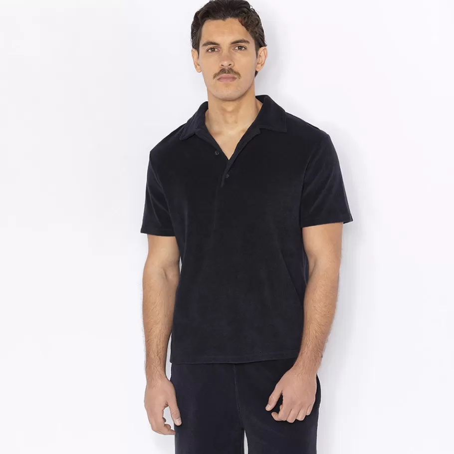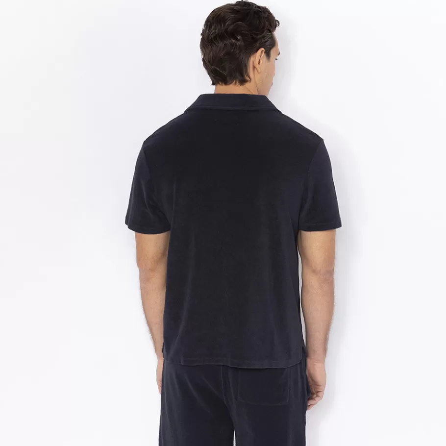 Terry polo shirt with chest pocket. Terry polo shirt. Cotton. Straight cut. Chest pocket. Rivieras metal pins. 3 engrave…