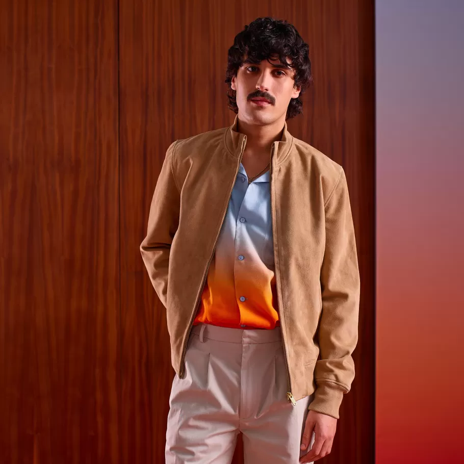 Leather (goat suede)Golden rivet emblem Sunset lining Golden metal zip Soft and light fabric Made in Pakistan …